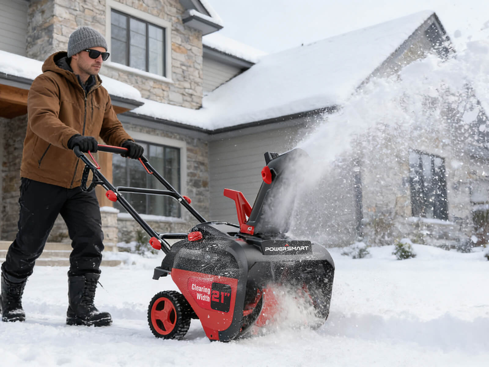 - Versatile: 21" width and 12.5" intake height quickly clear driveways, walkways, and patios.