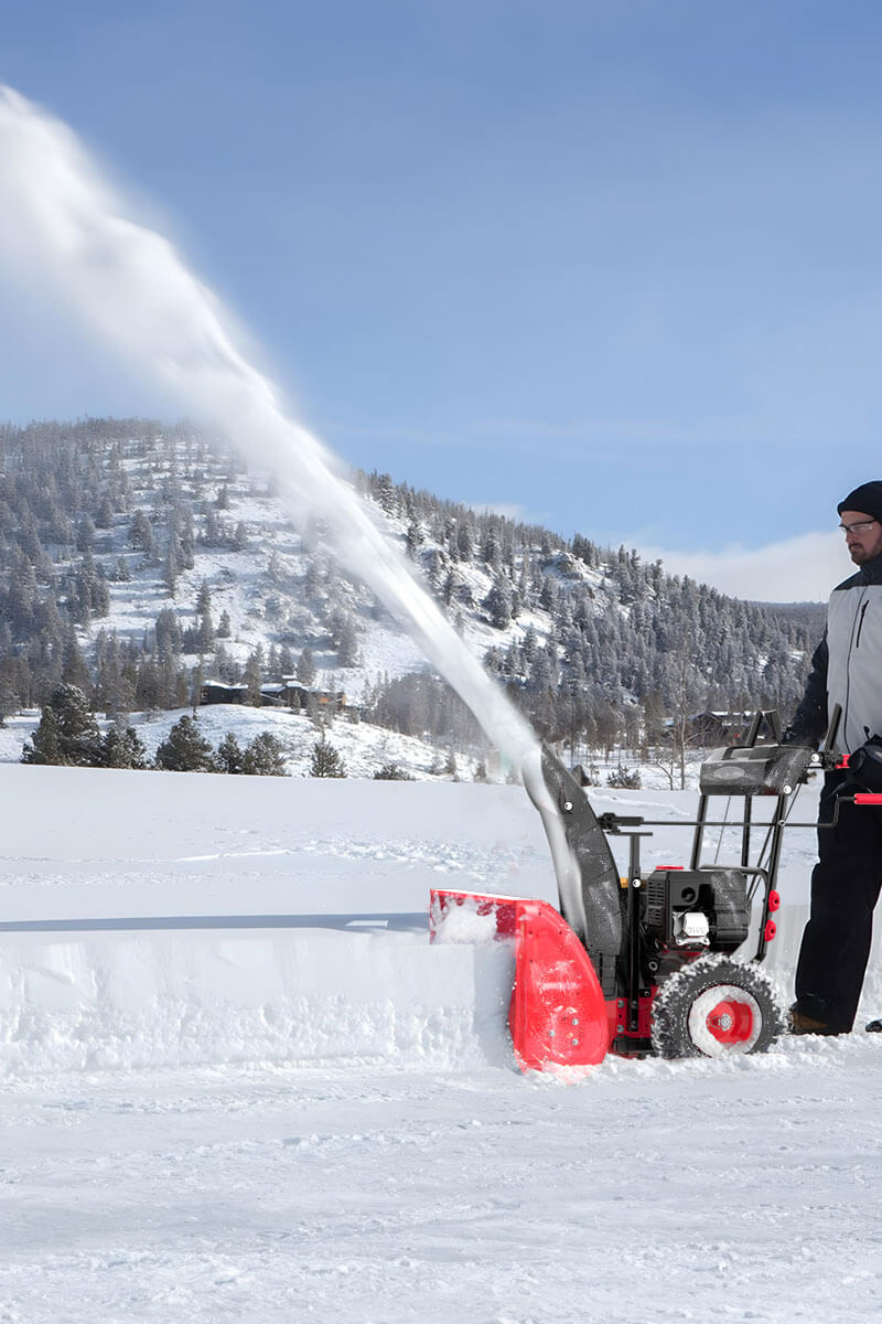 - 2-Stage: Steel auger with 40 ft snow throwing.