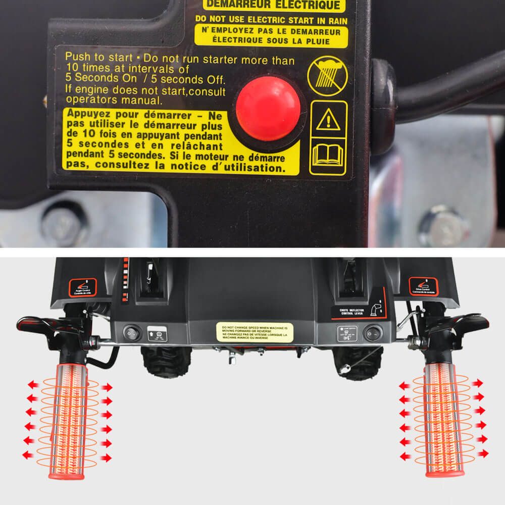 - Winter Ready: Heated handle, LED light, 180° chute control.