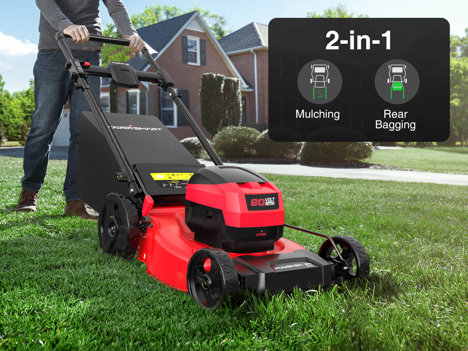 - 3-in-1: Mulching, rear discharge, and bagging with 5 height settings.