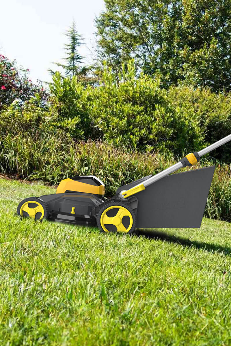 - Self-propelled design easily climbs hills with up to 20° incline.