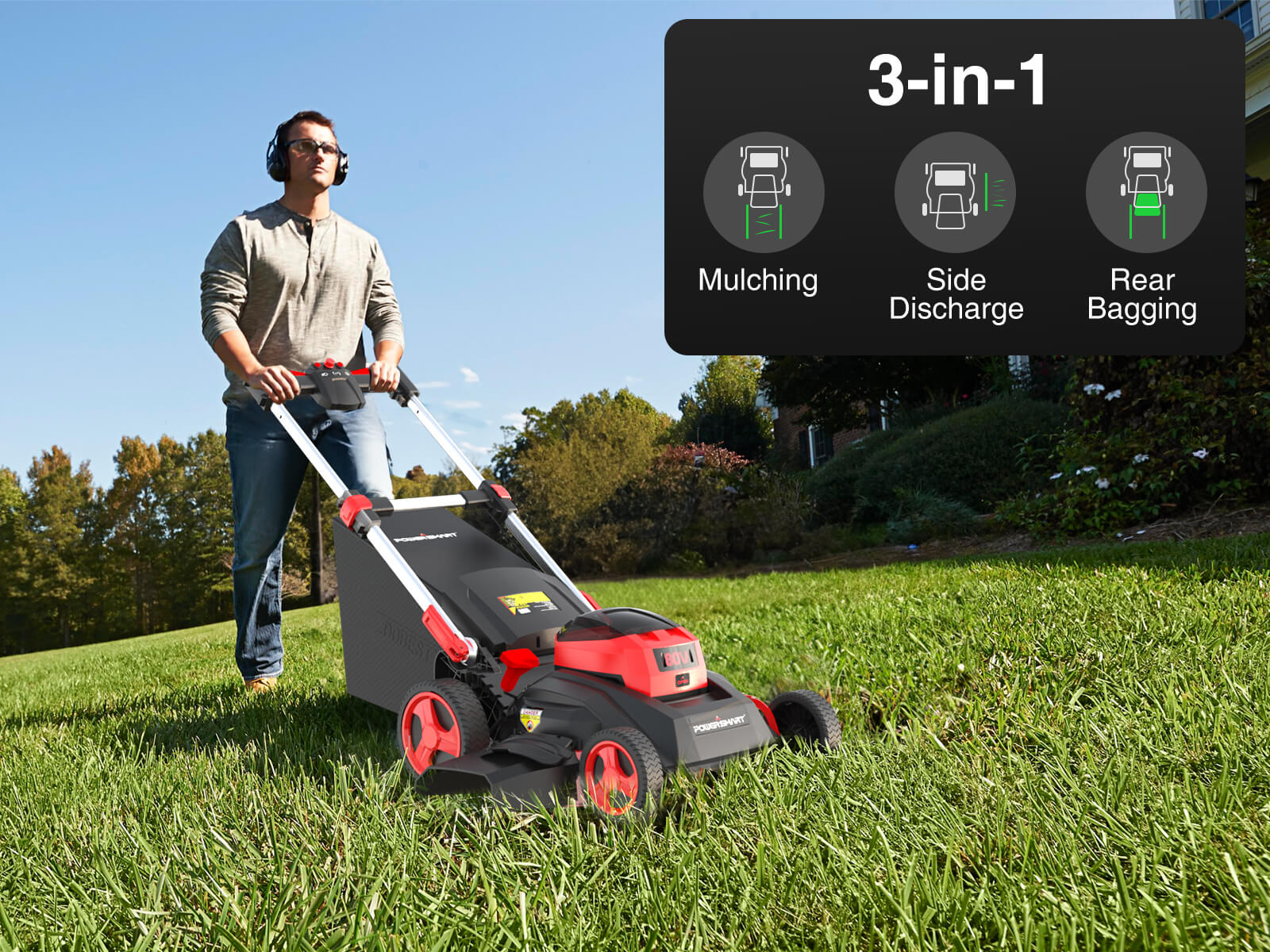 - 26-inch dual-blade mower delivers efficient lawn care.
